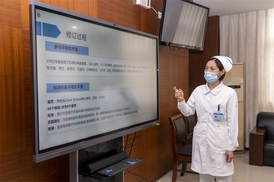 “运用最新的血管可视化技术,可以提高最小侵入性VAD穿刺的成功率。现在最常见的就是近红外和超声波技术。”在淳溪中心卫生院,高淳人民医院胃肠外科病区护士长孔荷香,正在深入浅出地为淳溪中心卫生院护士们解读着新版INS静疗指引。“此次培训我们不仅请我院伤口造口失禁学组、静脉治疗学组进行知识讲解,还请省级伤口造口失禁专科护士朱阳阳从造口人士饮食入手,通过讲解饮食注意事项、饮食误区及合理膳食搭配,保障造口人士肠道健康,提升基层护士知识储备。”孔荷香说。