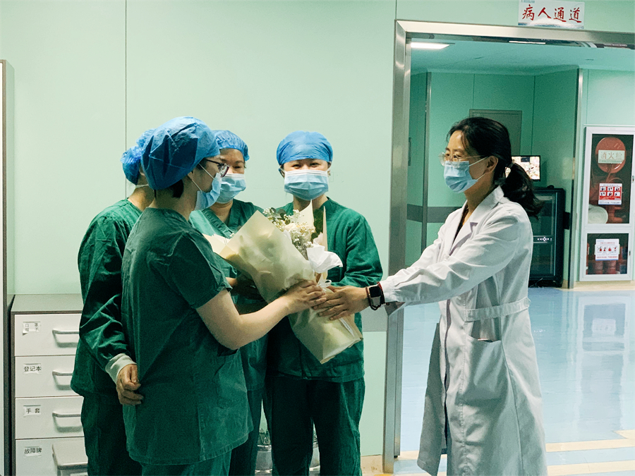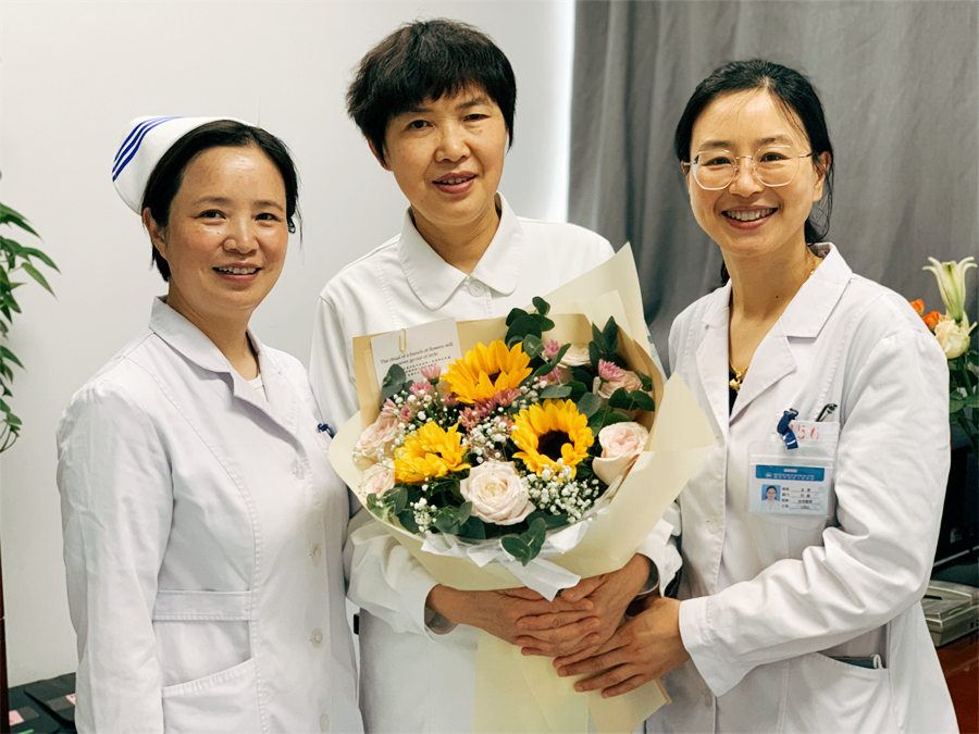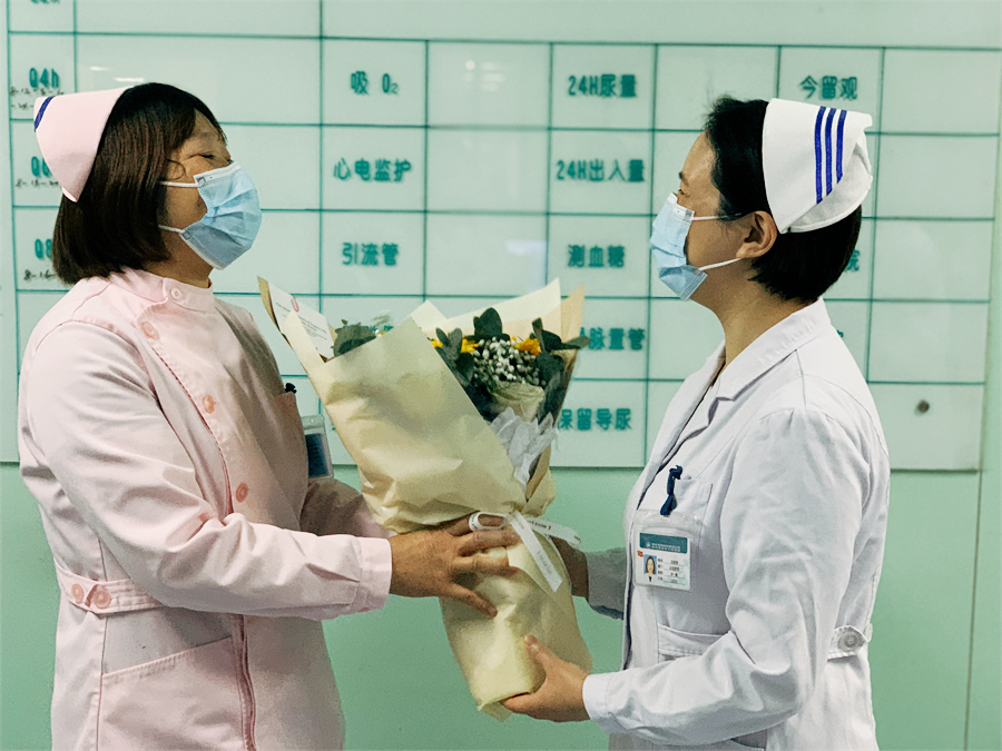 鲜花的香气,真情的祝福和欢声笑语在医院弥漫,院领导每到一处都与护士们亲切交谈,详细询问了解工作情况,并向即将退休的护理前辈方英英送上献花,感谢她们为护理事业及医院发展奉献青春。