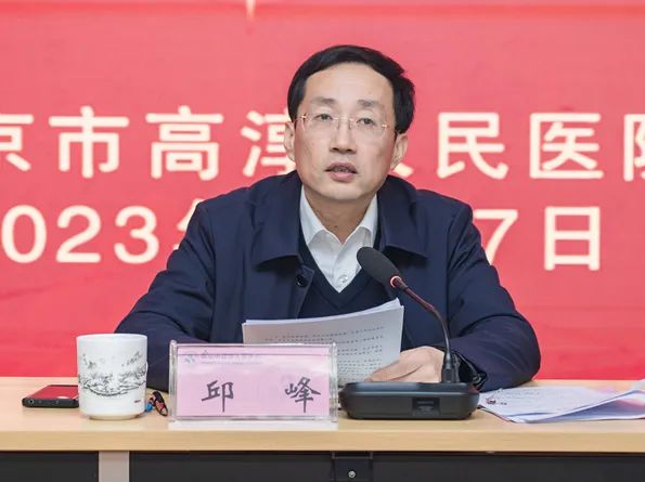副区长邱峰指出,2022年医院在医疗工作和疫情防控中取得了不俗成绩。成功创建成三甲医院,成为江苏大学附属医院,科研、技术、队伍建设呈现出良好的发展势头,医院整体实力不断提升。针对医院2023年工作,邱峰提出四点要求。一是强化党建引领,聚焦发展凝聚合力,加强队伍建设。注重加强理论学习,与时俱进抓好业务学习,深入推进医院作风建设,以“起步就是冲刺、开局就是决战”的姿态投入工作。二是落实“乙类乙管”,守牢底线确保安全,夯实发展基础。平稳有序推动新冠感染“乙类乙管”,全力做好医疗救治工作;坚持稳重求进总基调,全面落实安全生产责任制。三是加强内涵建设,扭住关键持续发力,提升发展质量。深入研究国家三级公立医院绩效考核和2022年江苏省三级医院评审标准,加强品牌学科与优势学科建设,推动核心技术攻坚,全面提升科教研水平,力争在省级重点临床专科和国家自然基金项目上实现突破。四是深挖发展潜能,聚焦难点改革创新,优化运行机制。深化公立医院改革,深入推进医共体建设;不断优化运行机制,激发医院高质量发展的内生动力;推进医疗服务信息化建设和医院文化建设,为区域和周边群众提供更加精细化、人性化、高品质的医疗服务。