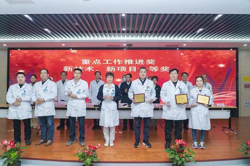 会议由医院院长高玉华主持。会议通报了2022年度受到区级以上表扬的集体及个人、医院2022年度先进集体及个人、2022年度新技术新项目等奖项;领导为获奖集体及个人颁奖。
