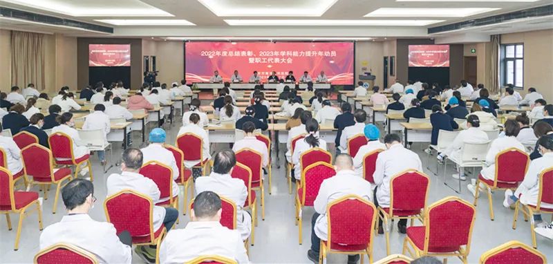 2月17日、18日,我院举办2022年度总结表彰、2023年学科能力提升年动员暨职工代表大会,副区长邱峰,区卫健委党委书记、主任陈芸,医院领导班子成员出席会议,医院中层干部、先进集体、先进个人代表和职工代表参加会议。
