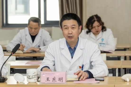 医院党委书记王东明作总结讲话。他代表医院党委,向长期以来关心支持医院发展的各位院外行风监督员致以衷心感谢。王东明书记表示,监督员们立足实际、建言献策,提出的关于专科建设、人才引育、流程优化、规范诊疗、品牌传播等方面的意见建议,具有重要的指导意义,医院将全面梳理、跟踪督办、对标整改。他指出,医院始终坚守“人民医院为人民”的根本宗旨,以提升医疗服务质量、改善群众就医体验为核心任务,在省级临床重点专科建设、信息化建设、服务流程优化等方面取得显著进展,努力满足人民群众多层次、多元化的健康需求。近年来,医院积极履行社会责任,通过开展跨省义诊、深化区域医联体协作共建等举措,持续扩大服务半径、增强健康辐射能力。王东明书记强调,2026年是医院迎接三级甲等医院复审的攻坚之年,也是实施“强院计划”、全力打造苏皖省际医疗服务高地的关键节点。医院将以此次座谈会为契机,聚焦内涵建设与质量提升,深化行风整治,奋力开创高质量发展新局面。他衷心希望各位监督员继续发挥社会监督与桥梁纽带作用,持续建言献策,与医院携手推进行风建设向纵深发展,共同为保障人民群众身体健康、建设优质医疗服务体系贡献力量。
