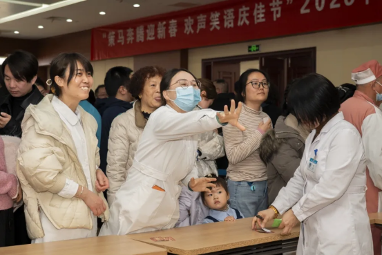 平时中午的食堂,是“白大褂们”匆匆打饭、短暂休整的“能量补给站”。而2026年2月11日中午,这里却化身全院千余名职工及家属奔赴的一场欢乐之约——“策马奔腾迎新春”联欢活动现场。热气腾腾的,不只是餐盘里的饭菜,更是每一个人脸上洋溢的笑容与期待。循着欢快的音乐与阵阵笑声上到四楼,眼前景象令人眼前一亮:多功能厅已变身年味十足的“新春游园会”,打卡背景墙、彩色气球飞扬,三大闯关关卡静待勇者。